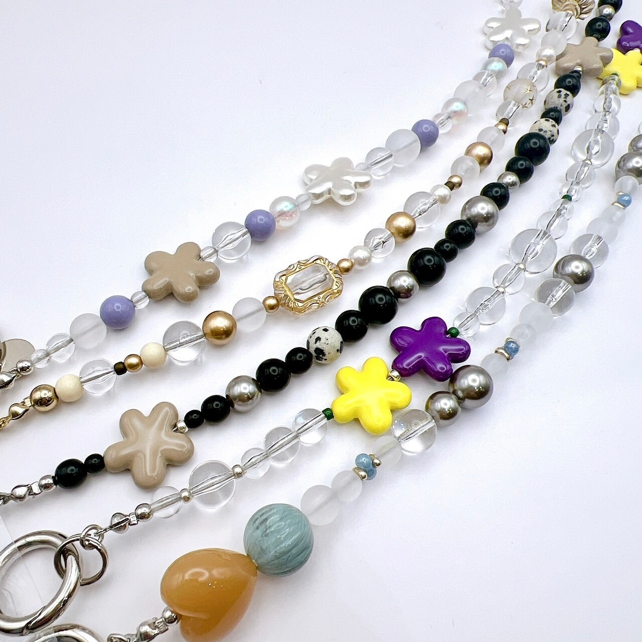 素材:アクリルビーズ、樹脂パールビーズ、ガラスビーズ